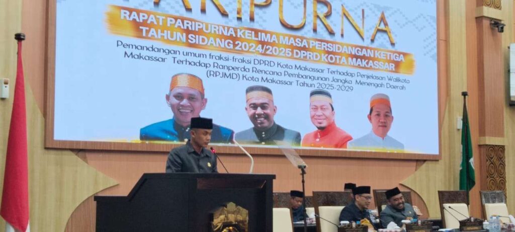 Makassar – Fraksi Mulia DPRD Kota Makassar menyampaikan sejumlah catatan penting terkait Rancangan Peraturan Daerah (Ranperda) tentang Rencana Pembangunan Jangka Menengah Daerah (RPJMD) Kota Makassar tahun 2025–2029. Hal ini disampaikan dalam rapat paripurna pemandangan umum fraksi-fraksi DPRD Makassar yang digelar Kamis, 12 Juni 2025 di ruang Rapat Paripurna DPRD Makassar Jalan AP Pettarani Makassar.